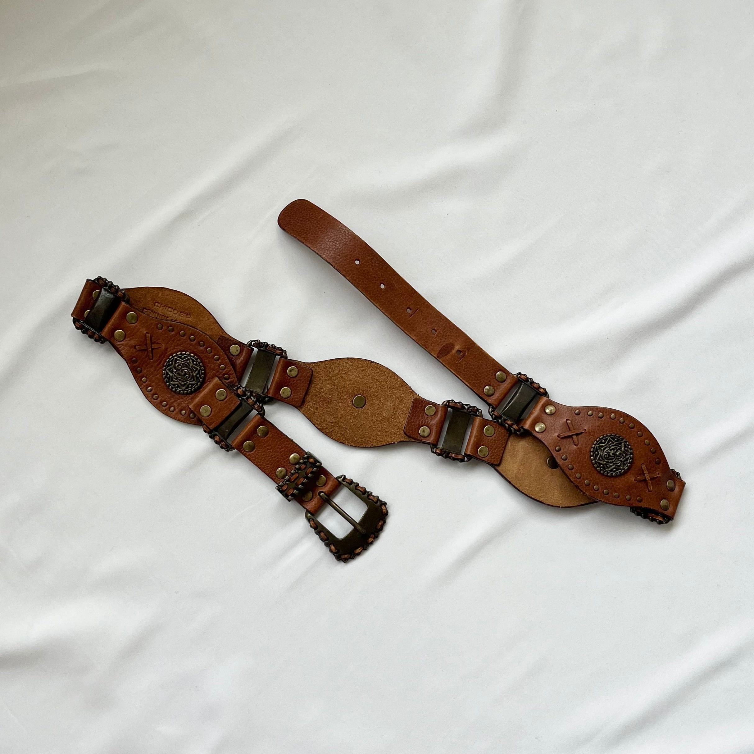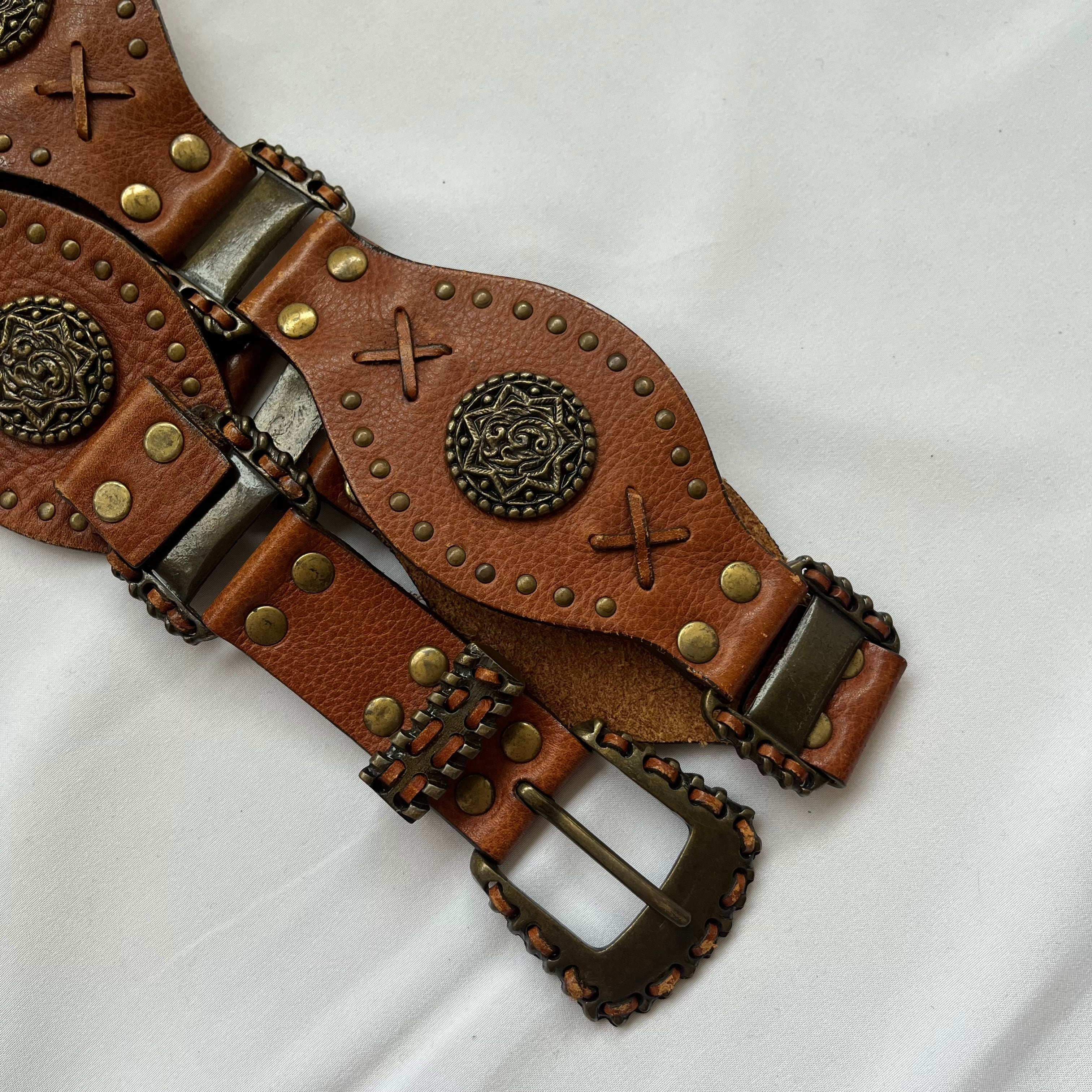 brown leather chunky belt